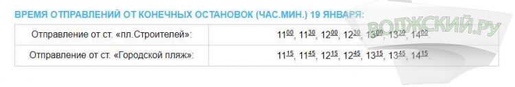Специально для доставки волжан на пляж, и обратно, МУП «Волжская автоколонна» 19 января запустит автобусы № 40к «Площадь Строителей – Городской пляж». Транспорт будет ходить с 11.00 до 14.00 часов с интервалом 30 минут.