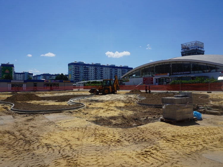 На площади рабочие начинают укладывать тротуарную плитку, а на следующей неделе – смонтируют автоматический полив и систему освещения. В дальнейшем установят скульптурные композиции, в том числе кинетический арт-объект в виде мотоцикла.