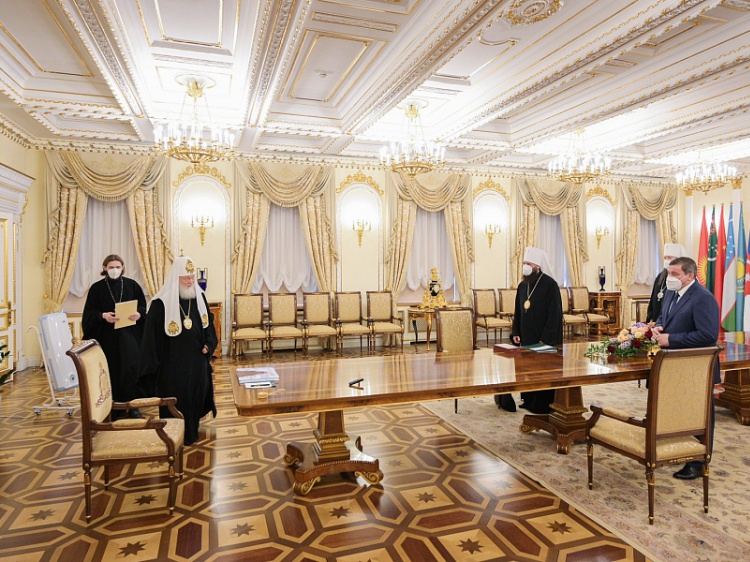 Накануне в Москве Святейший Патриарх Московский и всея Руси Кирилл встретился с губернатором Волгоградской области Андреем Бочаровым и митрополитом Волгоградским и Камышинским Феодором.