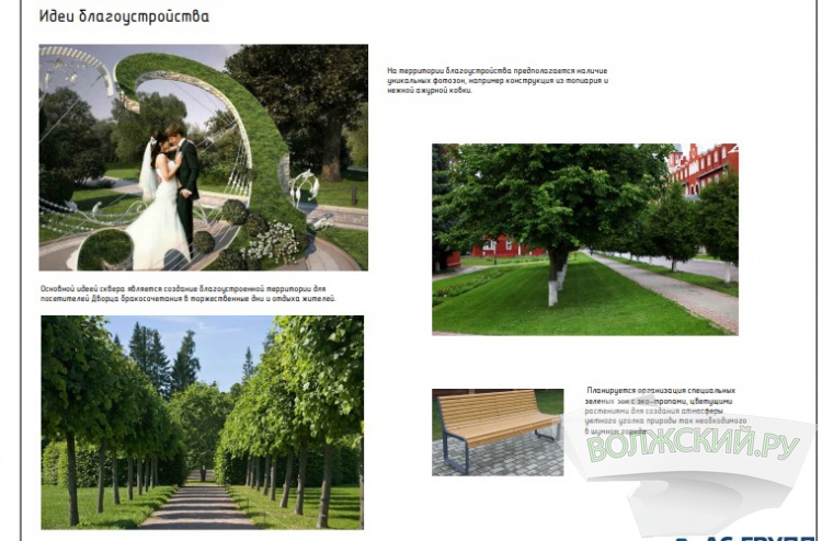 На участке в 0,4 га замостили плиткой пешеходные дорожки, установили фонари и лавочки. Появился здесь и обещанный арт-объект для влюблённых, который уже вызвал неоднозначные отзывы волжан. Жителей поражает форма основной части фигуры и цветовое решение. В ночное время добавляет яркости топиарному сердцу светодиодная лента по периметру ярко-зелёной части. Одно точно – вариант, представленный ранее в эскизе, смотрелся изящнее и аккуратнее (подробнее...).