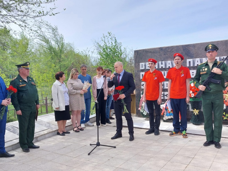 Накануне первых майских выходных у Братской могилы в поселке Краснооктябрьский почтили память младшего сержанта Алексея Лутонина.