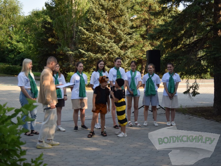 После выступления официальных лиц для волжан началось театрализованное представление, подготовленное активистами округа. В центре шоу оказалась маленькая медоносная пчелка. Она танцевала и жужжала тематические загадки.