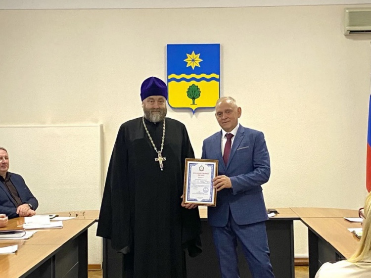 В свою очередь, руководитель отдела религиозного образования и катехизации Калачевской епархии Петр Симора вручил главе благодарственное письмо епископа Калачевского и Палласовского Иоанна. Таким образом священники отметили вклад города в обустройство и развитие прихода храма св. Георгия Победоносца.
