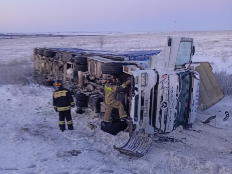 На 474 км трассы в кювет с последующим опрокидыванием вылетела фура из Турции. По предварительным данным, водитель не справился с управлением на скользкой дороге. На место ЧП выехали спасатели и скорая. Как сообщили Волжский.ру в ГБУЗ «КССМП», 25-летнему гражданину Турции, находившемуся за рулем грузовика, потребовалась медпомощь.