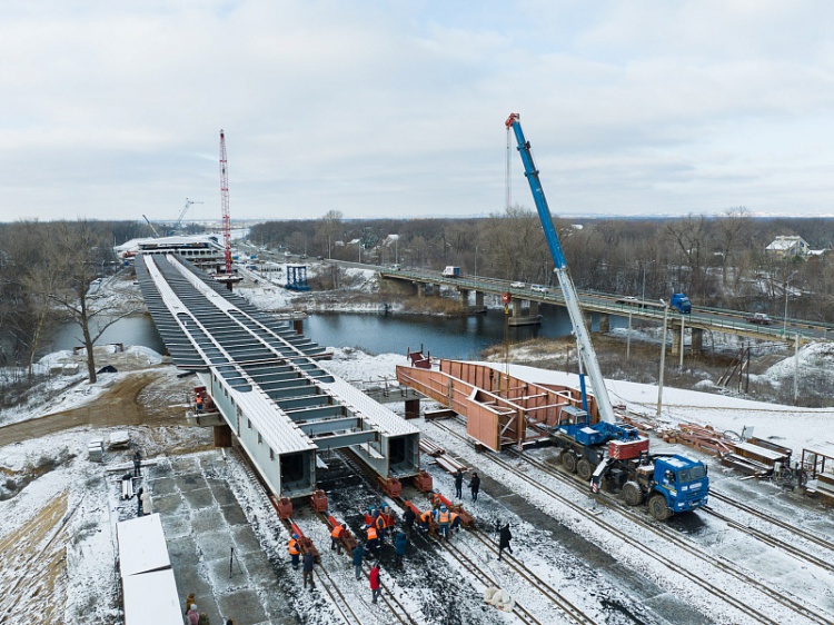 Как рассказали Волжский.ру в региональной администрации, в Среднеахтубинском районе строители монтируют пролеты по правой стороне моста через ерик Гнилой: общая готовность сооружения составляет 70%. На участке ежедневно трудится 70 специалистов и 15 единиц техники. Параллельно с надвижкой рабочие монтируют балки пролетных строений и бетонируют монолитную плиту проезжей части.