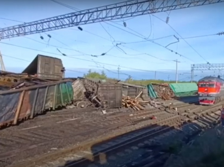 Приволжская железная дорога опубликовала кадры с места схода вагонов грузового состава, произошедшего в результате «вмешательства посторонних лиц».
