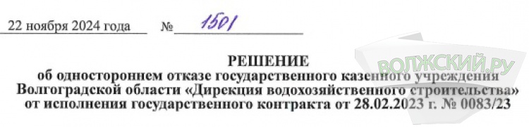 ГКУ «Дирекция водохозяйственного строительства» 22 ноября расторгла контракт с ЗАО «СМУ-4» на проведение работ по расчистке русла реки Ахтубы.