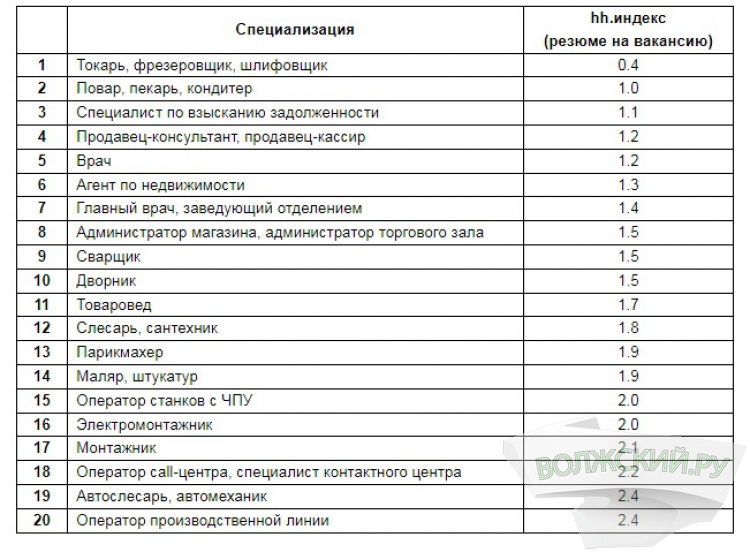 В декабре 2024 года в список самых дефицитных сотрудников вошли токари, повара, врачи, сварщики и продавцы. Например, у токарей на одну вакансию приходится лишь 0.4 резюме, а у врачей едва набирается 1,2 резюме.