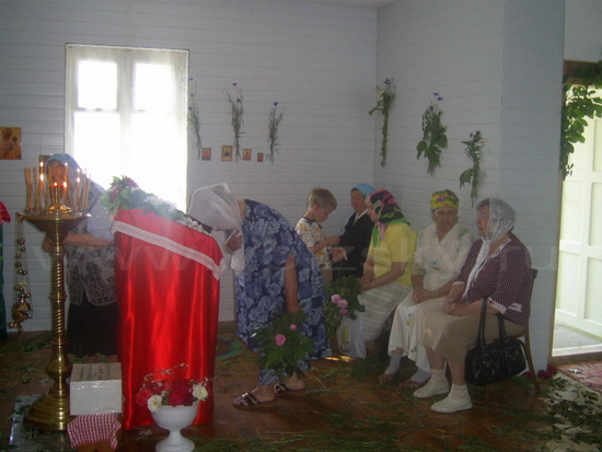 Вторая – потому, что в праздник Духого Дня вспоминают явление Аврааму Святой Троицы в Мамврийской дубраве. Именно по этой причине, украшенный разнотравьем храм, как бы служит аналогом дубовой роще, прикрывшей своей девственной листвой Божественного Гостя…