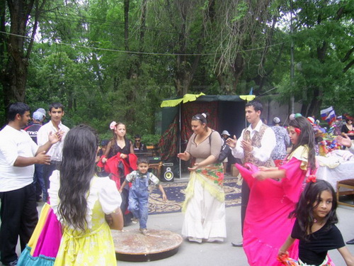 Не осталась в стороне от праздника цыганская диаспора. Неподалеку от сцены, они, под песенный цыганский аккомпанемент устроили такие зажигательные танцы, что, невольно вспомнив русскую классику, я реально начал оглядываться по сторонам в поисках бесшабашных, бородатых купцов. (А и взаправду: неужели измельчало русское купечество, или купцы перевелись?!!) Особенно колоритно среди цыганского табора смотрелся смуглый мальчонка, лихо отплясывающий разбитную цыганочку…