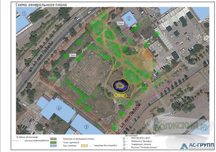 Как стало известно Волжский.ру из документов, на первый этап обновления территории по улице 40 лет Победы между школами № 35 и 37 потратят почти 27,5 миллиона рублей. Контракт заключается с небезызвестным ООО «АС-Групп». Работы должны завершиться до 31 августа 2021 года (подробнее...). Согласно проектам, размещённым на сайте «Открытый Волжский», на территории обещают разместить детские площадки с батутами и канатной дорогой-тарзанкой, скамейки, сцену для проведения общественных мероприятий и кинопоказов (подробнее...).