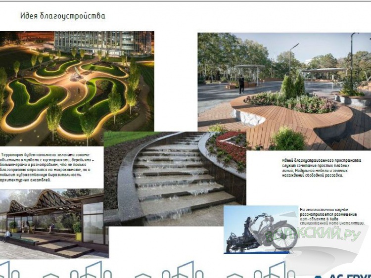 Как узнал Волжский.ру из закупочной документации (подробнее...), территория должна преобразиться до неузнаваемости. Ее замостят цветной тротуарной плитой, сделают газоны и клумбы, проведут поливочный водопровод, установят урны, вазоны, лавочки и уличные фонари. На территории произведут санитарную расчистку и обрезку, высадят всего 9 новых деревьев и 24 кустарника. Здесь разместят по 18 «радиусных» скамеек со спинками и без спинок, парковые перголы «Радуга», подвесные качели, разобьют цветники. Также на площади появятся арт-объект, кинетическая скульптура и фонтан.