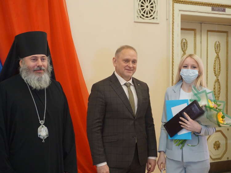 Мероприятие прошло во дворце культуры «Волгоградгидрострой». Как сообщили Волжский.ру в пресс-службе городской администрации, глава города Игорь Воронин вручил медикам благодарности, а епископ Калачёвский и Палласовский Иоанн - патриаршие награды. Таким образом чиновники и священники отметили особые заслуги в борьбе с пандемией главных врачей городской детской поликлиники № 2 Дмитрия Орлова, больницы № 3 Дмитрия Шипунова, а также горбольницы № 2 Ольги Грошевой и ее заместителей Елены Араканцевой и Екатерины Запорожцевой.