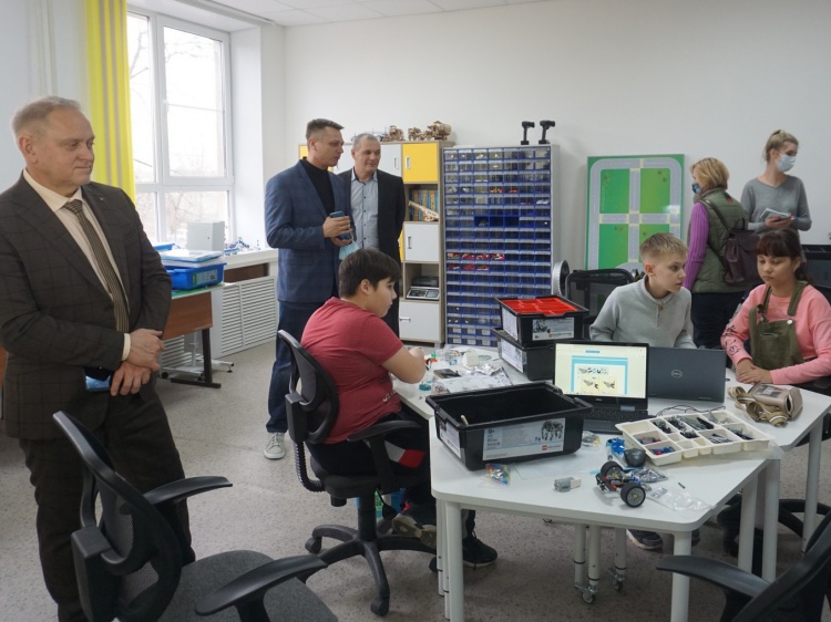 Во время экскурсии мэру показали прототип «умной» уличной скамьи с подсветкой на солнечных батареях, модель работающей на водяном двигателе машины, напечатанные на 3D-принтере и собранные ребятами беспилотники.