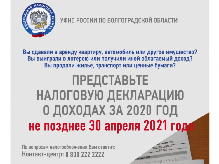 ИФНС России по г. Волжскому Волгоградской области напоминает: не забудьте вовремя отчитаться о доходах за 2020 год.