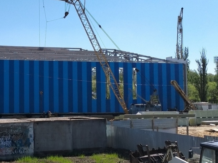 В Волжском продолжается строительство крытого футбольного манежа на территории Центрального стадиона.