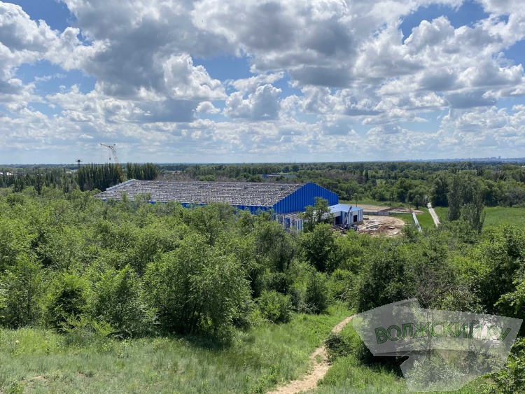 В Волжском продолжают возводить крытый футбольный манеж рядом с Центральным стадионом.