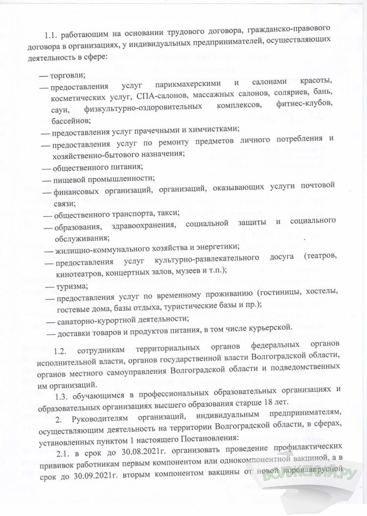 Как узнал Волжский.ру из документа (подробнее...), обязательное проведение прививок от COVID-19 по эпидемическим показаниям должно быть осуществлено для людей, работающих в сфере торговли, услуг (бытовые услуги, красота, спорт, здоровье), общепита, доставки, транспорта, в том числе такси, культуры, туризма, гостиничного бизнеса и санаторно-курортной деятельности. Кроме того, обязательной вакцинации подлежат сотрудники сферы ЖКХ и энергетики, образования, здравоохранения, соцзащиты и соцобслуживания, финансовых и почтовых организаций, пищевой промышленности. Также обязательной остается вакцинация для органов исполнительной власти, местного самоуправления и подведомственных им учреждений. Получить прививку от коронавируса придется и совершеннолетним студентам ВУЗов и ССУЗов, руководителям и ИП, работающим в вышеперечисленных сферах.