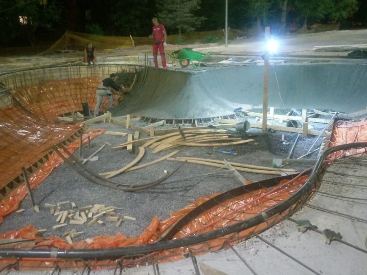 Как сообщили Волжский.ру в пресс-службе городской администрации, в сквере на улице Советская подрядчик завершает укладку асфальта и травмобезопасного основания для будущей детской площадки. После этого установят теннисный стол, малые архитектурные формы и скамейки. Рядом со зданием АТС-7 обустроят скейт-парк. На участке уже залили площадку под памп-трек и бетонируют боул – специальную чашу для скейтеров и роллеров. Для этого используют особую марку бетона B-35, который применяют при высоких требованиях к устойчивости. Укладывать материал можно при строгом соблюдении температурного режима, поэтому работа ведётся преимущественно по вечерам. Объём работ выполнили на 40%.