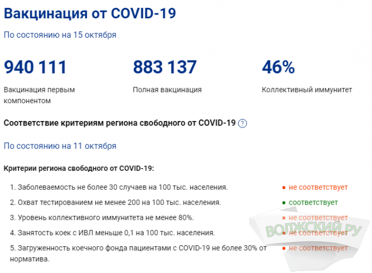 Федеральный оперштаб отнес Волгоградскую область в «оранжевую» зону. В регионе лишь один из пяти критериев соответствует «зоне, свободной от коронавируса». Коллективный иммунитет сформирован лишь у 46% населения.