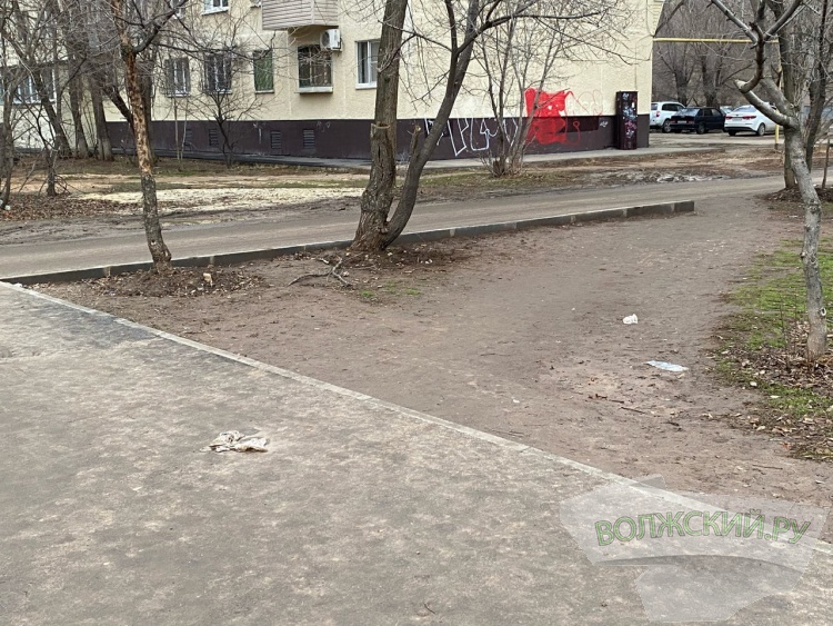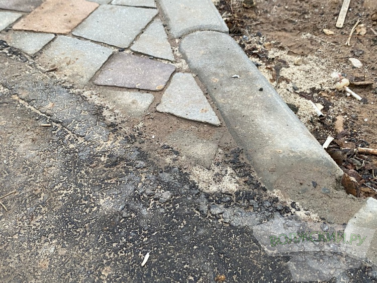 Ещё один проблемный участок: со стороны дома № 29. Волжане постоянно срезают путь по грунту. Однако здесь так и осталась грязь, хотя бордюрный камень зачем-то установили.