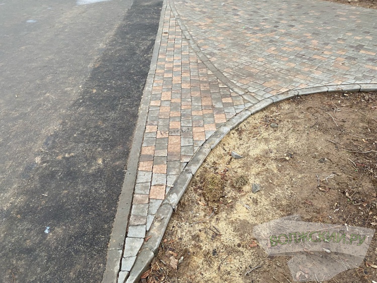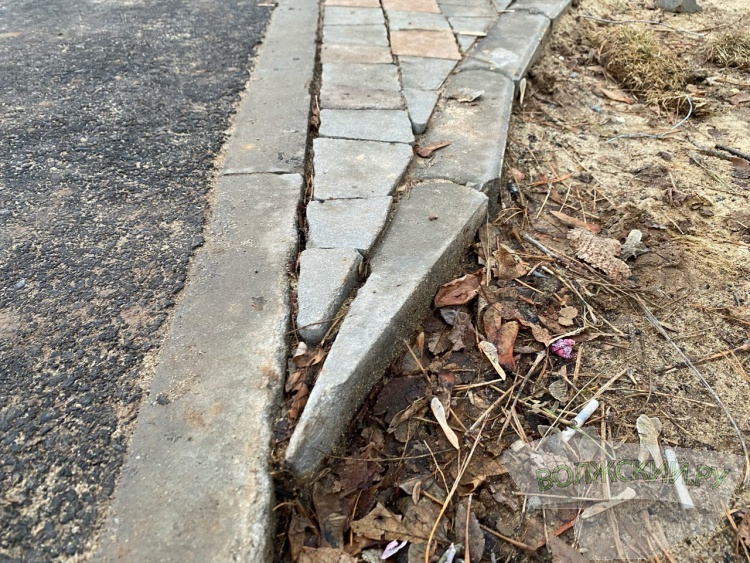 На этом участке использовали сразу три вида покрытия: асфальт, тротуарную плитку и резину. Рабочие несколько раз меняли расположение плитки, в результате получился непонятный орнамент. Соединить аккуратно три вида покрытия рабочие не смогли.