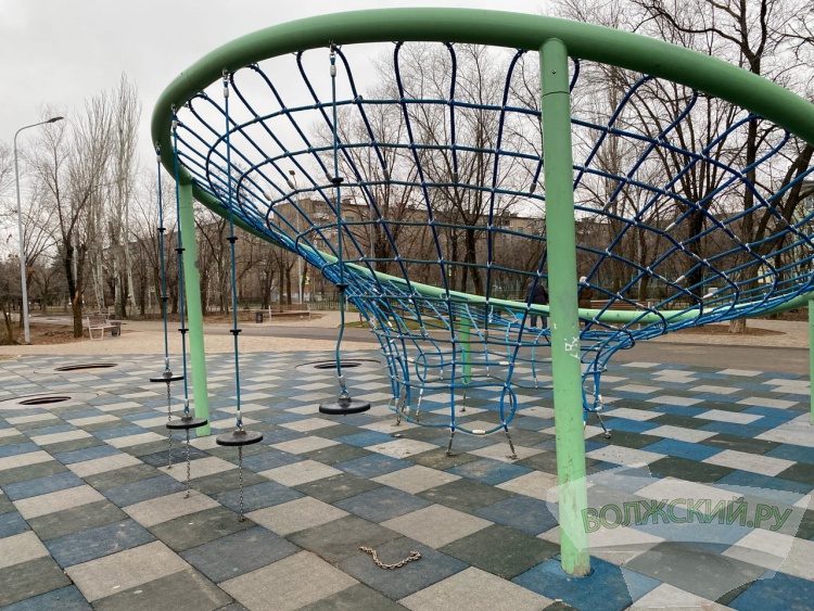 А вот встроенные в пол 3 уличных батута находятся в рабочем состоянии. При этом, на выносливость их проверяли и дети, и взрослые. В первое время даже выстраивалась очередь из желающих. Подобное уличное оборудование в Волжском установили впервые. В диковинку местным жителям были и качели-гнездо.