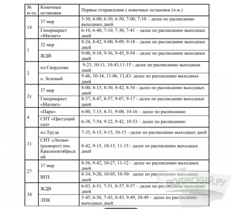 МУП «Волжская автоколонна № 1732» представила расписание работы общественного транспорта в новогодние праздники.