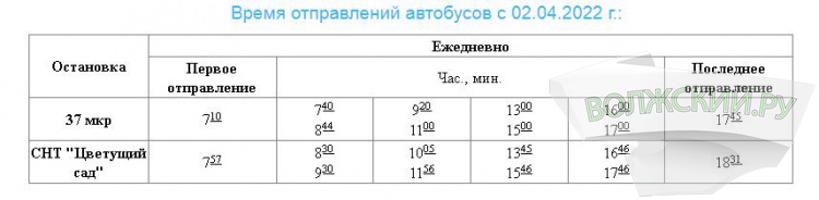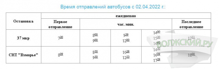 В субботу, 2 апреля, в Волжском начнут работу дачные автобусные маршруты.