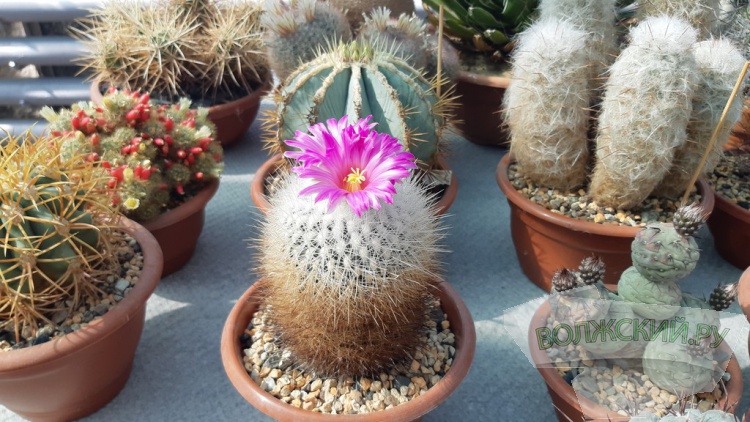 Волжский.ру побывал на открытии, в том числе в качестве экспонента. В этом году выставка впервые представлена двумя экспозиционными теплицами, оформленными в стиле Мексики и Африки. В одной из них экспонирована обновленная коллекция ботсада, которая в прошлом году пополнилась крупномерными экземплярами ферокактусов и эхинокактусов. Эти растения достигают размеров небольшого бочонка и имеют весьма эффектные колючки. Вырастить такое растение в условиях городской квартиры – занятие не из простых.