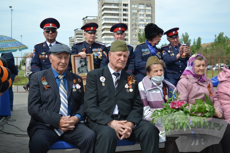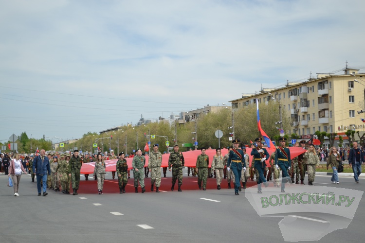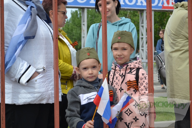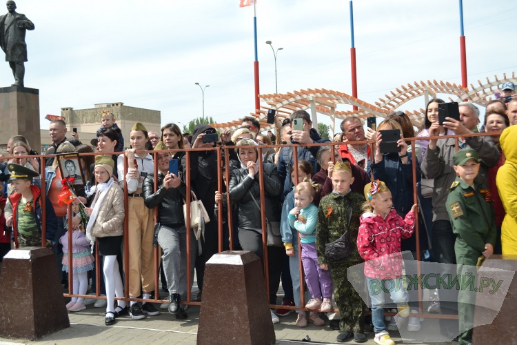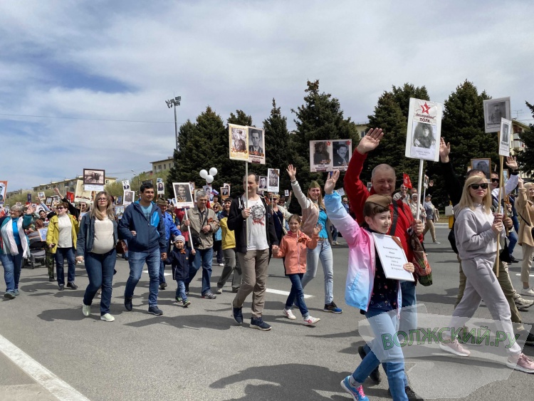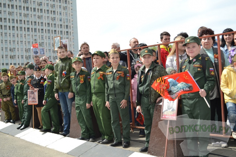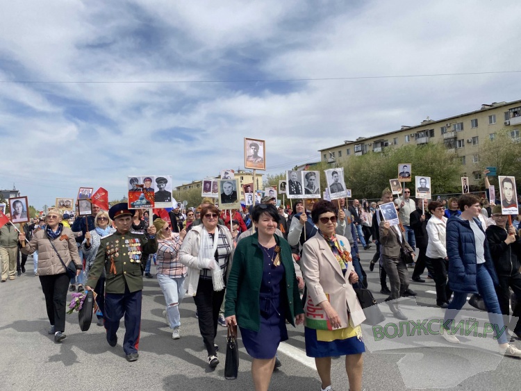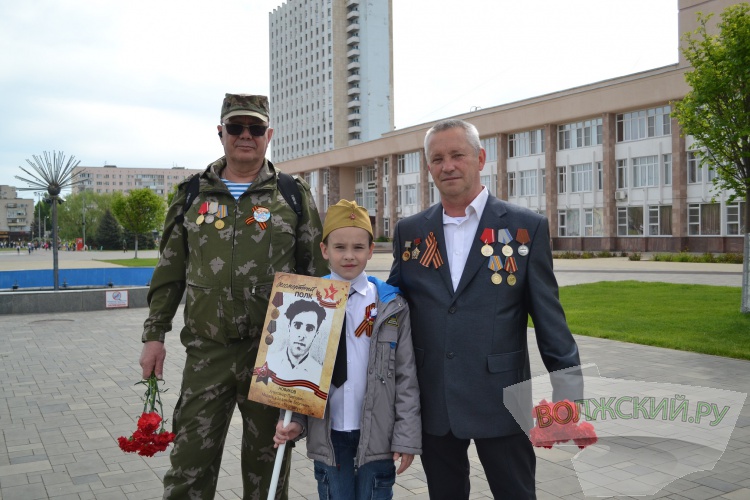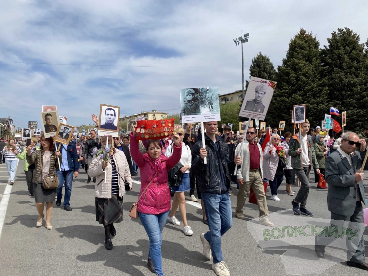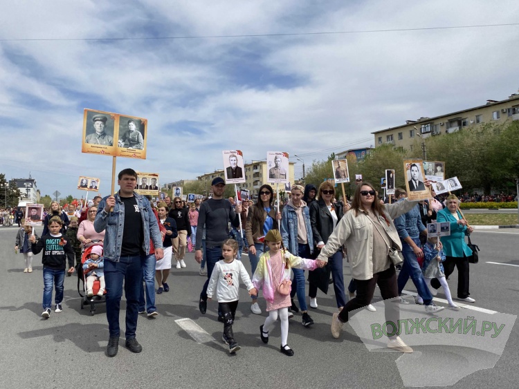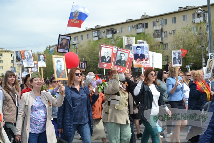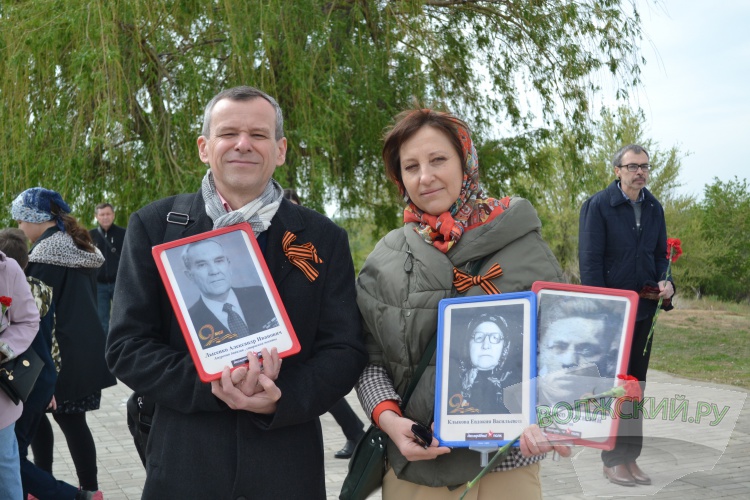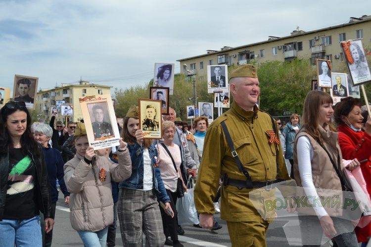 После парадных расчётов перед ветеранами и зрителями прошла, казалось, бесконечная колонна «Бессмертного полка». Тысячи жителей Волжского семьями прошли с портретами своих родных, участвовавших в войне 1941-1945 годов. Многие волжане участвуют в акции ежегодно. В руках многих виднелось по несколько штендеров, а кто-то принёс и награды своего героя.