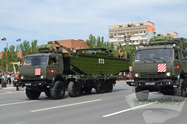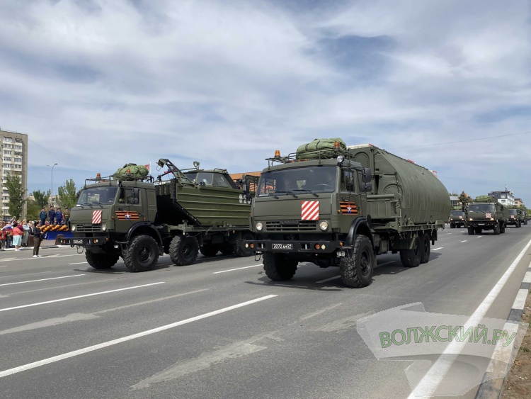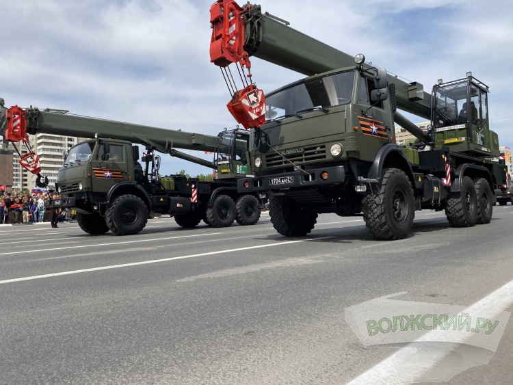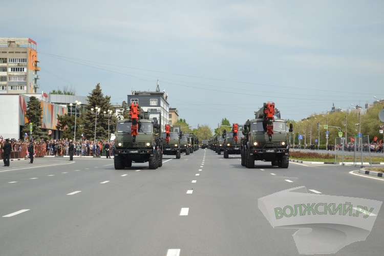 Затем перед зрителями проехала колонна из 12 машин военной спецтехники из войсковой части № 73420. Инженерная техника впечатляющих размеров особенно порадовала юных волжан.