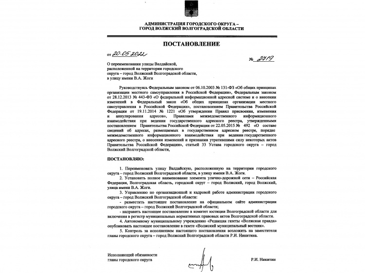 Как сообщили Волжский.ру в пресс-службе администрации Волжского, в его честь решено назвать одну из улиц Волжского. Соответствующее постановление администрации города уже принято. Имя Владимира Жоги будет носить улица Валдайская, которую решено переименовать. Это дорога, ведущая к поселку Киляковка, которая в прошлом году была отремонтирована в рамках БКД.