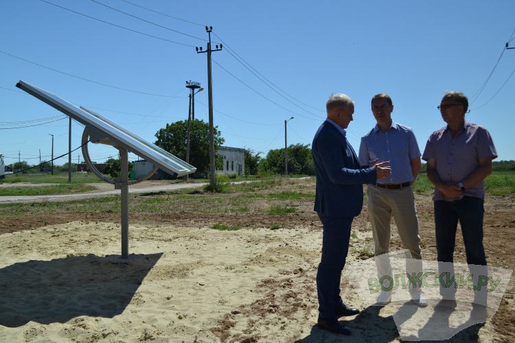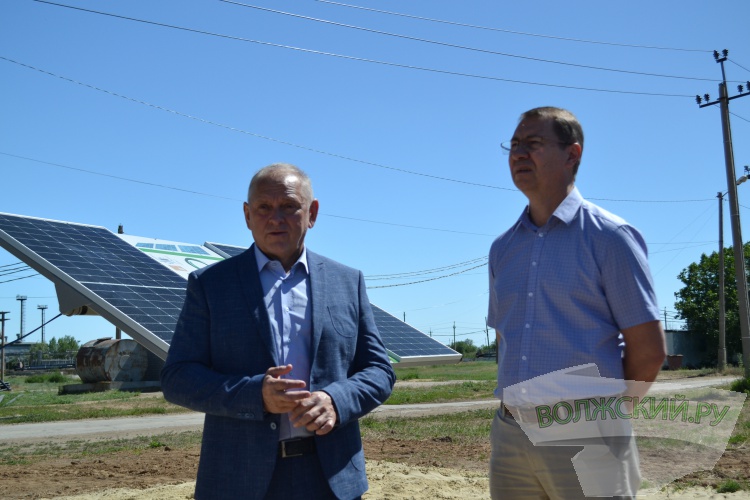 В прошлом году солнечные станции, появились на 4 объектах водопроводно-канализационного хозяйства, в том числе на насосных станциях и помещениях ремонтно-механического цеха. На днях в районе цеха канализационных очистных сооружений оборудовали ещё одну «зелёную» электростанцию с сетевым инвертором, который позволяет не накапливать энергию, а сразу расходовать. Новый объект осмотрели глава Волжского Игорь Воронин и директор МУП «Водоканал» Юрий Орлов.