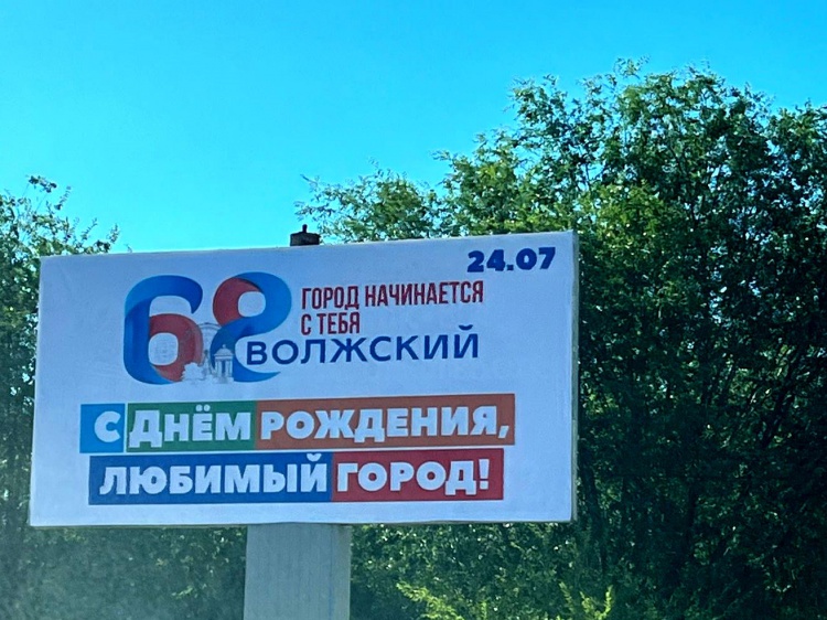 Как сообщили Волжский.ру в пресс-службе администрации Волжского, на проспекте им. Ленина и улице Пушкина ко Дню города установили 4 рекламных щита с надписью «С Днем рождения, любимый город!». Аналогичными плакатами украсили 15 остановок общественного транспорта. Обновили и растяжку «Волжский, с Днем города!» на площади им. В.И. Ленина.