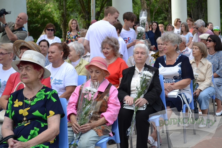 Юные волжане подарили первостроителям цветы и поблагодарили за строительство города от имени подрастающего поколения.