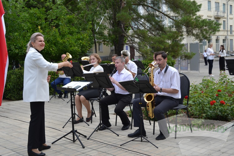 Митинг начался с исполнения гимна Волжского под аккомпанемент оркестра.