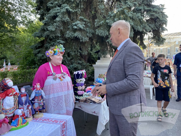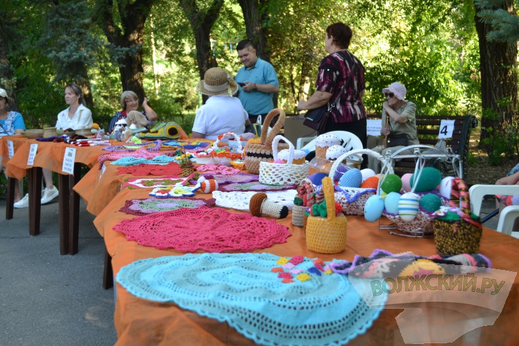 В это время на аллее фонтанов работали творческие площадки. Участники объединения «Волжский – город мастеров» проводили мастер-классы по декоративно-прикладному творчеству. Общество инвалидов и АНО «Теплый дом» также устроили выставку поделок.