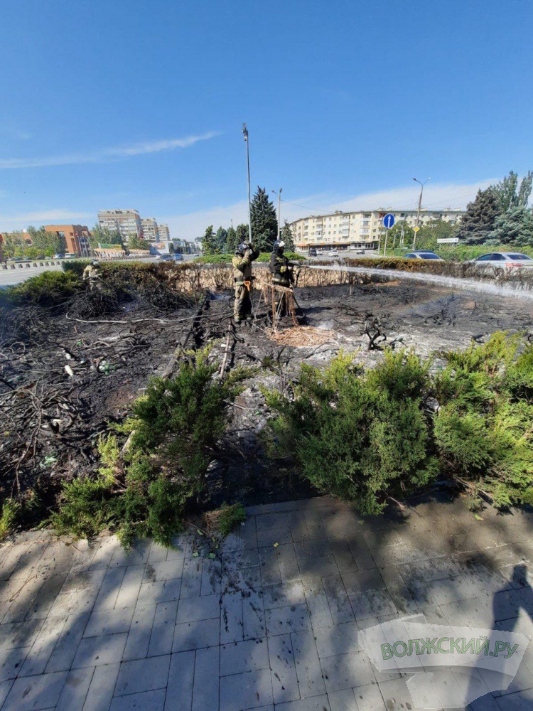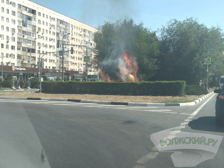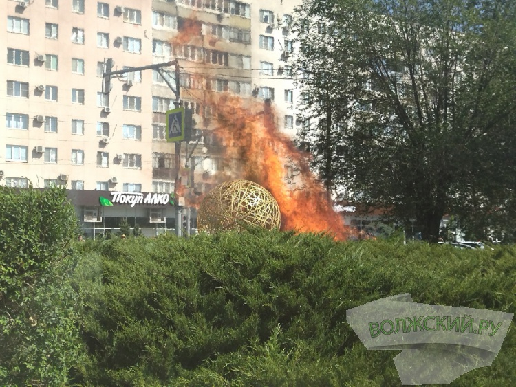Как стало известно Волжский.ру, у пешеходного перехода около гостиницы «Ахтуба» горит светодиодный шар. Пламя распространилось на растущий вокруг можжевельник. По предварительным данным, пластиковая фигура охвачена пламенем по всей площади. К месту ЧП стягиваются пожарные расчеты.