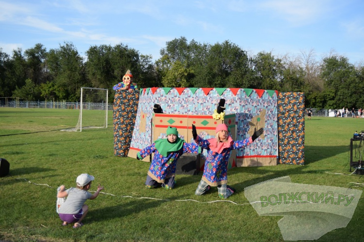 Затем на территории начали работать интерактивные площадки. Самых маленьких детей на стадионе ждало представление от театра кукол «Арлекин». Малышам показали постановку «Конёк-Горбунок».