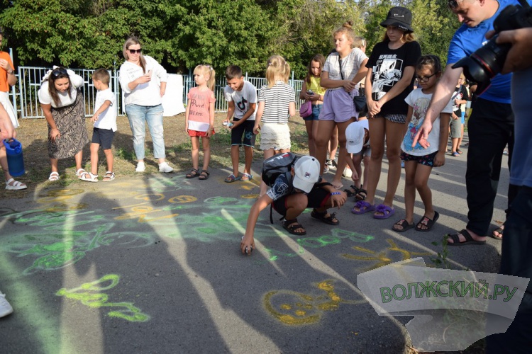 Для старших ребят аниматоры подготовили конкурс граффити. Но сначала им предстояло посостязаться и найти баллончики с краской. Затем ребята разделились на команды и устроили арт-баттл на асфальте.
