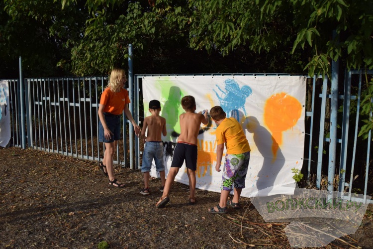 После этого они получили возможность выразить свое творчество на специально подготовленных баннерах. Ребята с азартом приступили к рисованию. В итоге получились очень красочные панно.