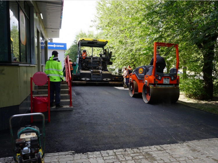 На бульваре Профсоюзов асфальтируют пешеходные дорожки вдоль домов № 2 и 16, которые не были включены в перечень работ по БКД.