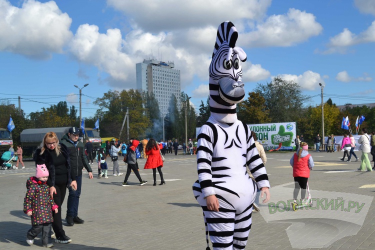 Развлекательно-познавательную программу организовали на территории парка «Волжский». На концертной площадке настроение волжанам поднимали артисты духового оркестра ЦКиИ «Октябрь», солнечная погода и ростовые куклы, в том числе зебра, которая часто участвует в акциях городской автоинспекции.