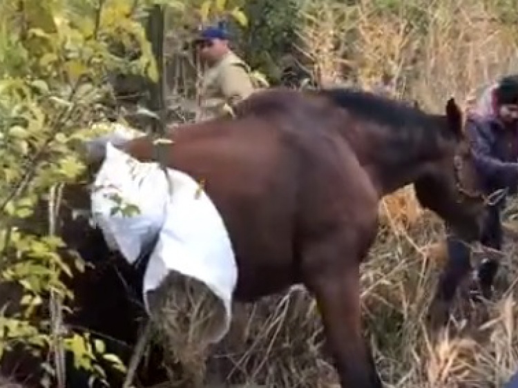 С помощью ковша от экскаватора удалось вытащить непарнокопытное. Отмечается, что конь поранился, но жизни это не угрожает.