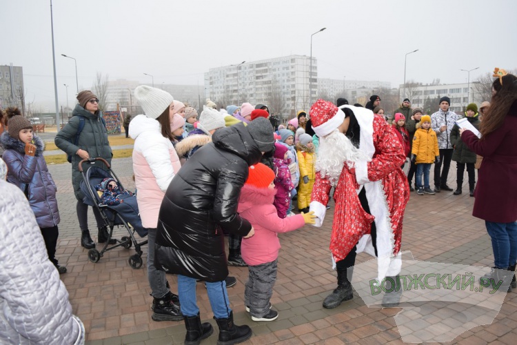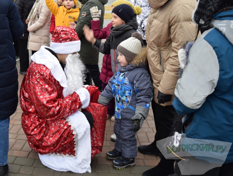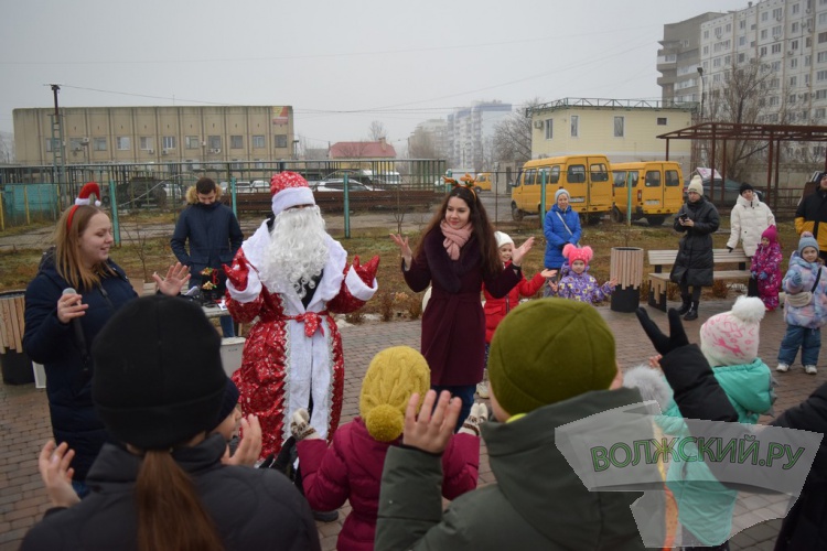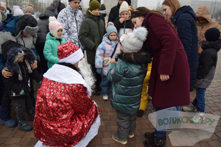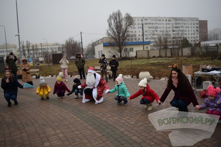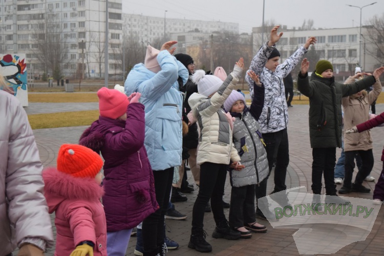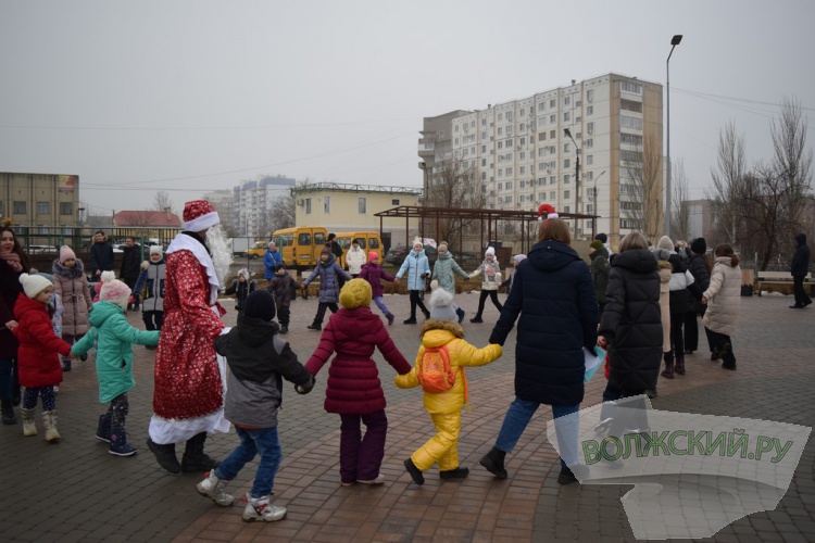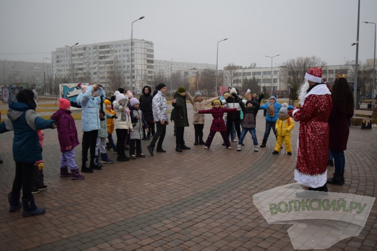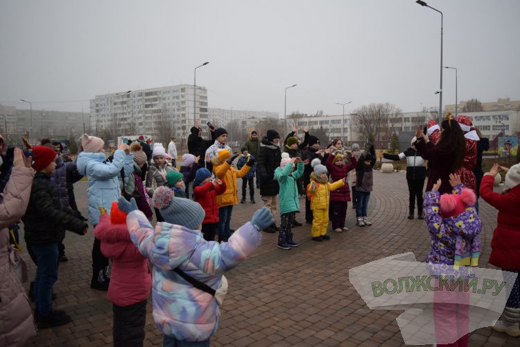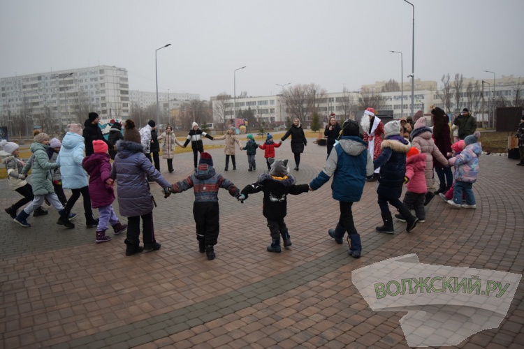 Согреться в ненастный зимний день юным волжанам помогали бодрые танцы. Под постоянно ускоряющуюся музыку движения танца за аниматорами повторяли не только дети, но и взрослые. Ну, и конечно, какая ёлка без хоровода!