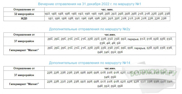 В связи с продлением времени работы 31 декабря на маршрутах № 1 и 2у будут частично отменены утренние рейсы 1 января.