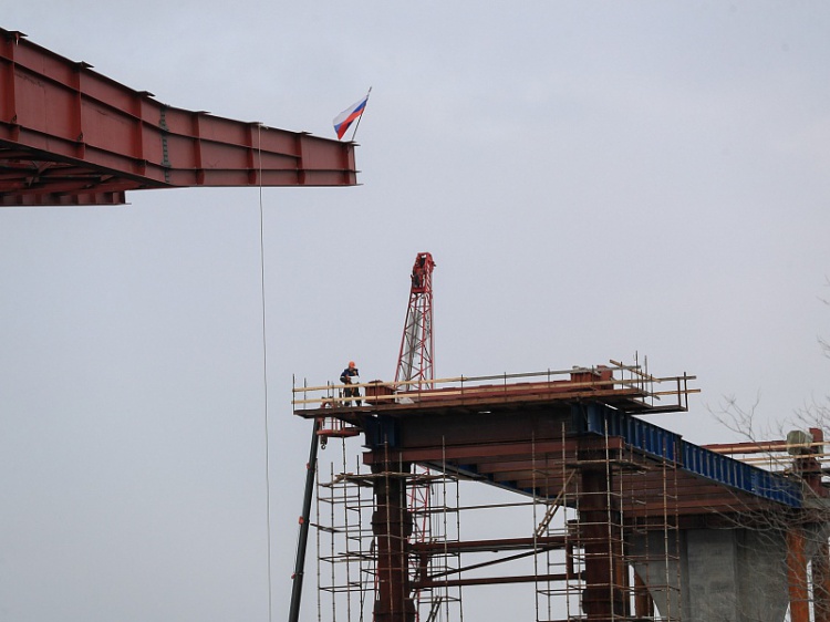 – Пролет состоит из элементов, которые по специальному заказу изготавливают на заводе, доставляют на объект и собирают в блоки. Всего их 23. Блоки поднимают наверх и при помощи домкрата двигают горизонтально от одного берега к другому. Надвижка пролета пройдет в три стадии и займет порядка двух месяцев, — пояснил Юрий Сорокин.