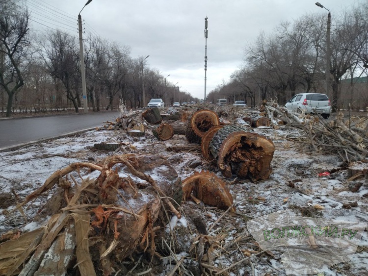 В Волжском на улице Сведлова рабочие завершают снос многолетних тополей.
