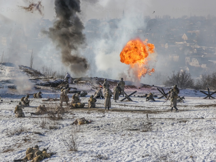 Как рассказали Волжский.ру в пресс-службе ГУ МЧС по Волгоградской области, сражение за город на Волге восстановили члены общероссийского общественного движения «Росрекон» из Волгоградской, Московской, Ростовской, Астраханской, Тамбовской, Саратовской областей, Краснодарского края и Республики Татарстан. Зрители увидели события за 26 января 1943 года, когда соединились войска 21-й и 62-й армии Донского фронта. В результате операции «Кольцо» тогда удалось разделить на две части остатки окруженных в черте города немецких войск.